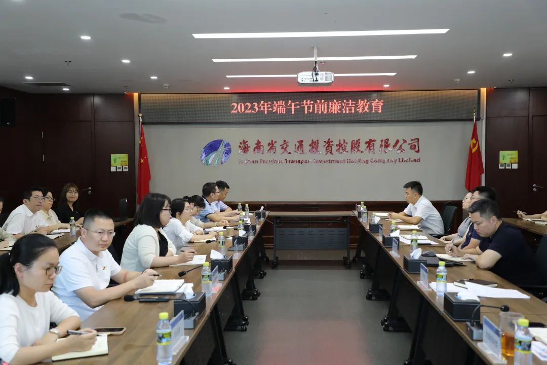 端午佳节将至,为持之以恒落实中央八项规定精神,坚定不移纠治“四风”,6月20日,海南交投召开2023年端午节前廉洁教育会。党委副书记、总经理陈泰锋,党委委员、副总经理陈敬出席会议,会议由党委委员、纪委书记、监察专员郑文海主持。公司全体党员干部、下属单位班子成员参加会议。 [更多]