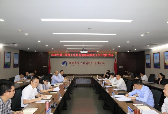 10月22日,海南交控召开2020年前三季度工作总结暨第四季度工作计划汇报会。会议由公司党委委员、副总经理梁翠主持,各部门正副职经理、下属单位领导班子成员及相关人员出席会议。 [更多]