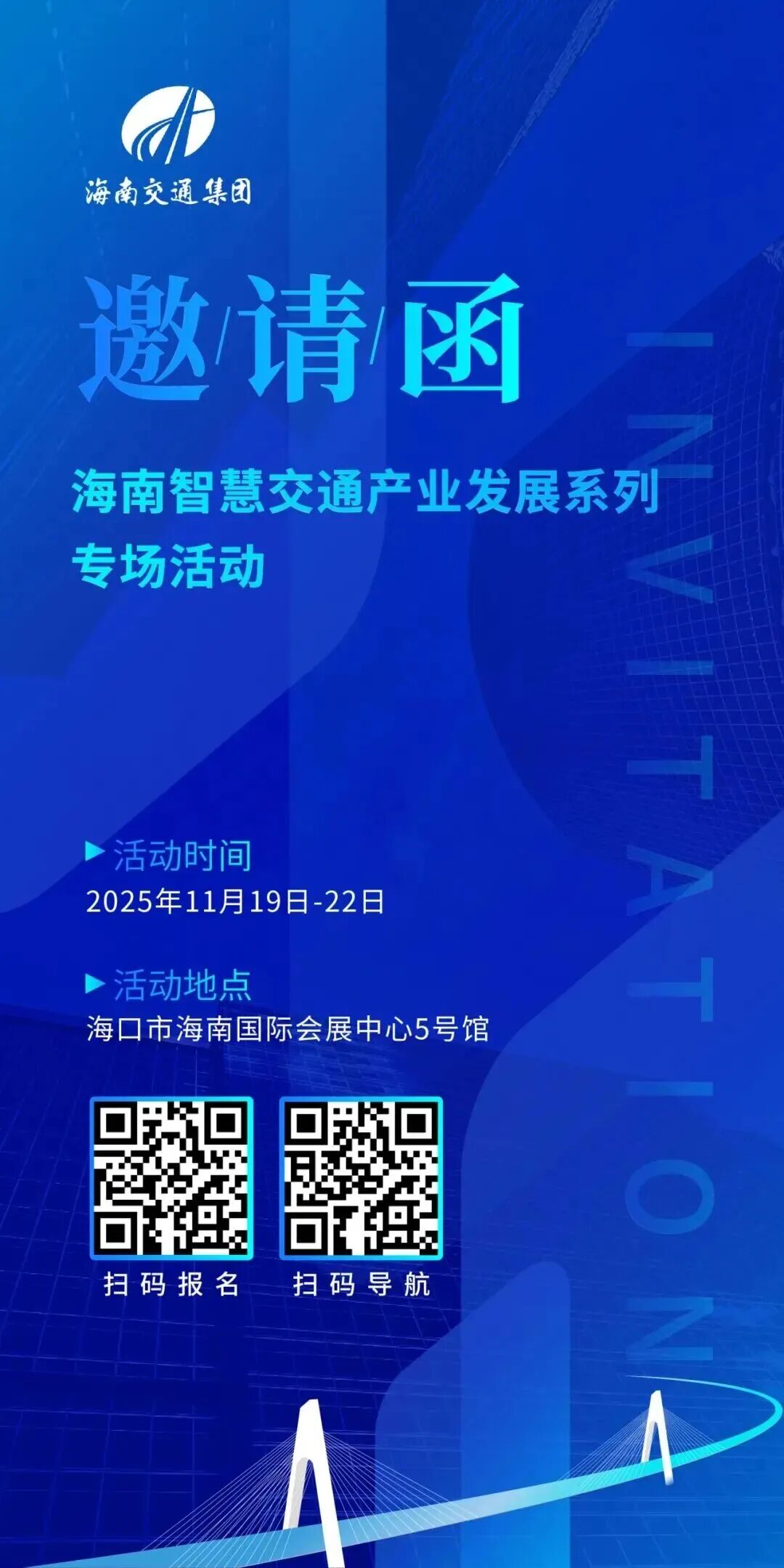 11月14日,海南日报全媒体记者从海南省交通投资集团有限公司(以下简称海南交通集团)获悉,2025第二十届中国智能交通大会期间将举办海南智慧交通产业发展专场活动,海南交通集团已正式发出“邀请函”,报名工作正式启动,诚邀关心支持海南智慧交通事业的各界有识之士参与,共绘海南数智交通新蓝图。 [更多]
