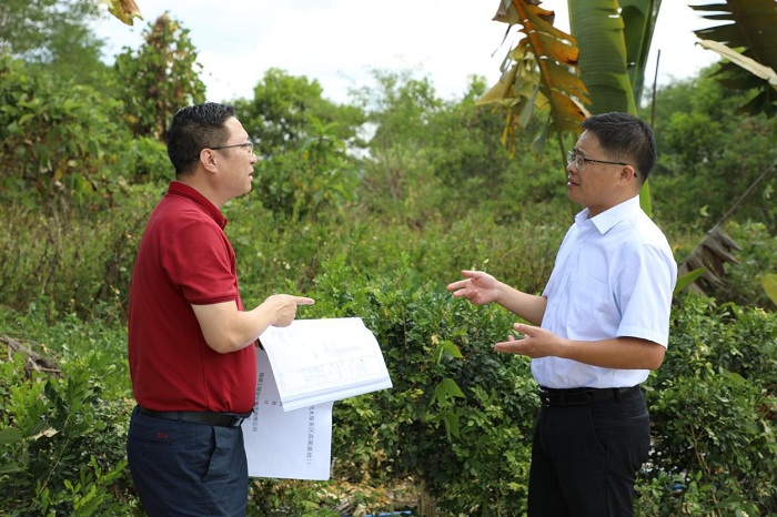 在枫木苗圃基地项目现场,陈泰锋实地察看土地利用情况,听取关于项目立项、规划建设、预算编制等方面的汇报,并与相关负责人探讨项目建设的可行性和必要性。