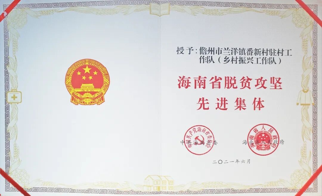 海南交控定点帮扶村儋州市兰洋镇番新村驻村工作队荣获“海南省脱贫攻坚先进集体”称号。