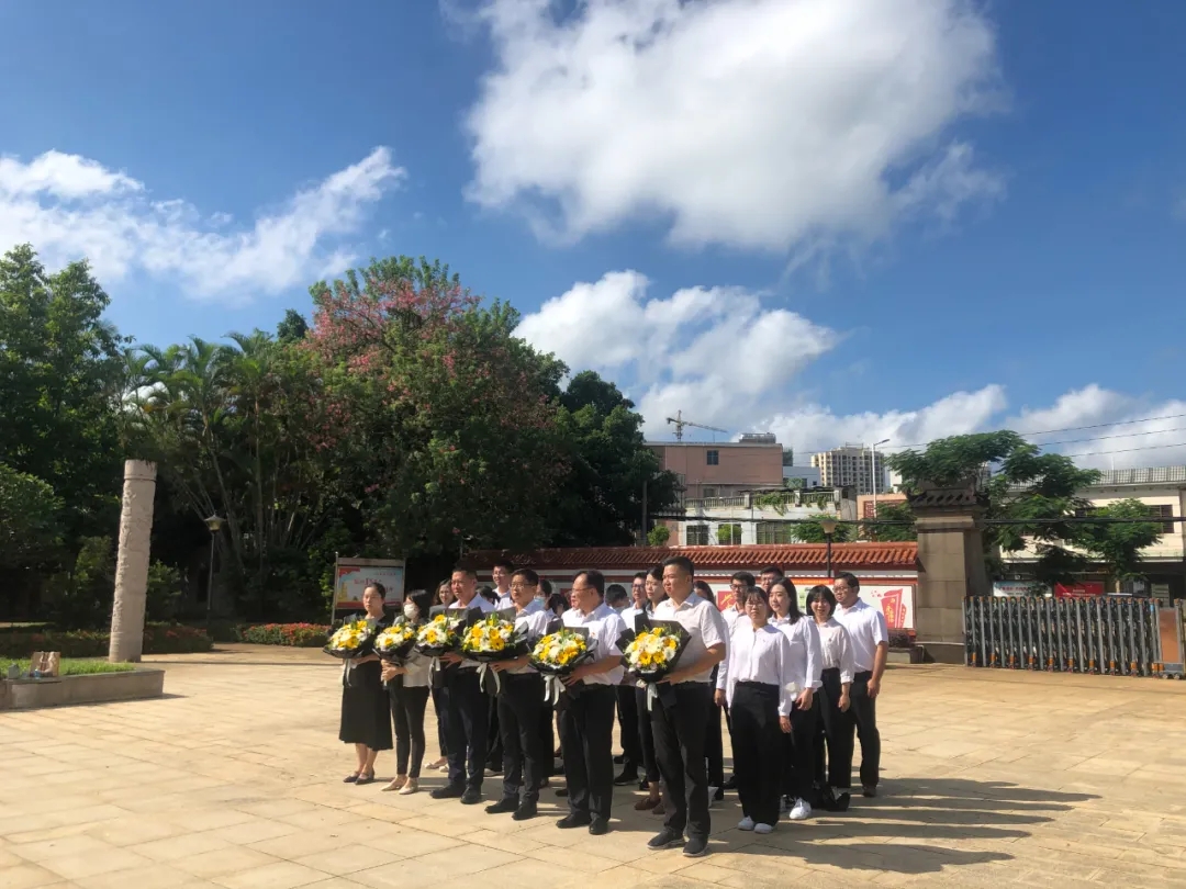 琼崖红军云龙改编旧址是海南省国防教育示范基地、海南省文物保护单位、海南省青少年革命传统教育基地。走进云龙改编旧址映入眼帘的是一尊手握钢枪的独立队战士铜像,在基座正面刻有徐向前元帅在1989年5月的亲笔题词“琼崖抗日先锋”几个大字。全体党员瞻仰了独立队战士全身铜质铸像,党员代表献花。在铜像前,陈泰锋书记带领投资公司党支部、服务区公司党支部全体党员重温入党誓词:“我志愿加入中国共产党……永不叛党!”众人神情坚毅、气势如虹,声声誓言抒发为党奉献终身的满腔热血。