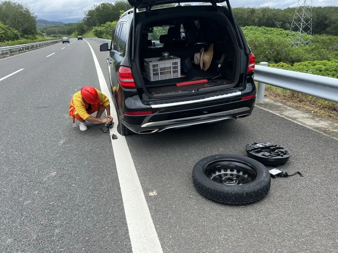 乐东站“车轮上党小组”陈明锐帮助车主更换轮胎