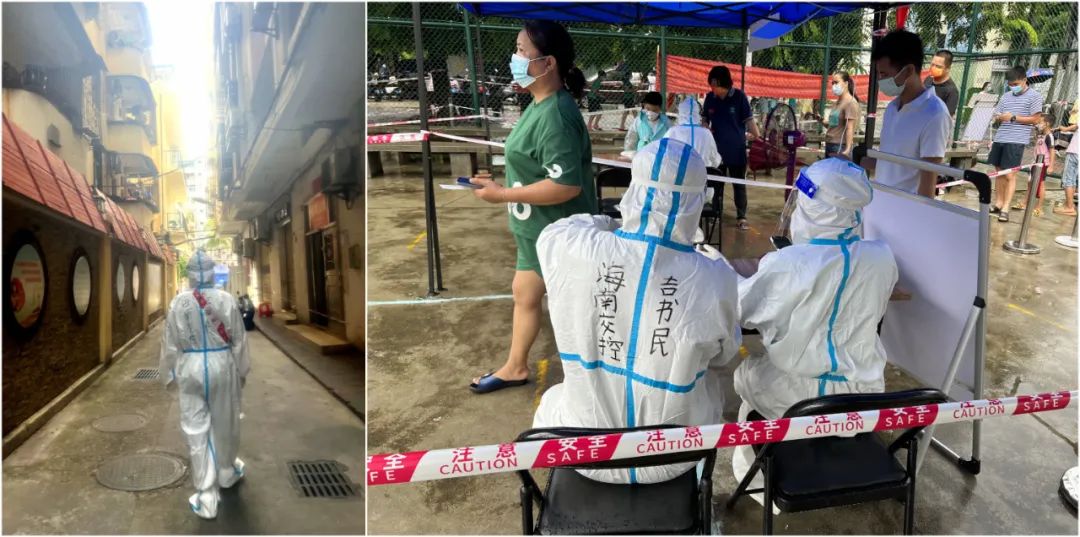 随着疫情发展进入新阶段,根据防疫工作需要,吉书民和其他几名同事被抽调到疫情更为严重的天涯区儋州村社区,开展更为艰巨的疫情防控工作。“骑士”们翻身下“马”,开始走街串巷,登高楼、敲门窗,挨家挨户进行核酸采样工作。