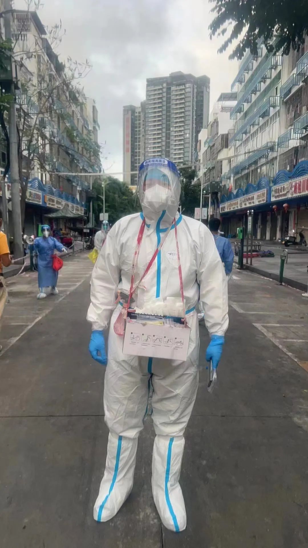 8月22日,在大家的共同努力下,符恺和他的队友们圆满完成了转运任务。但是抗疫援助尚未结束,他们随即转战支援社区工作。这次他分配到的任务是入户做核酸信息采集工作,每天需要穿着厚厚的防护服,沿着长长的街道挨家挨户上门进行信息采集。原来轻松爬上的楼梯,因穿着厚重的“大白”,戴着严实的医用口罩,而变得十分艰难,每一层台阶对他们来说都是挑战。一天的工作下来,经常是衣服已经湿透,可以拧出水来,脱掉手套,惊现双手已被汗水泡得发白发皱。但这些对于志愿者来说,属于“常规操作”。一代人有一代人的征程,一代人有一代人的担当,青年人是社会发展运行的主力军之一,每当在国家特殊困难时期,都得有青年人勇于站出来,勇于承担社会责任,国家才能不断渡过难关,迎来黎明的希望。