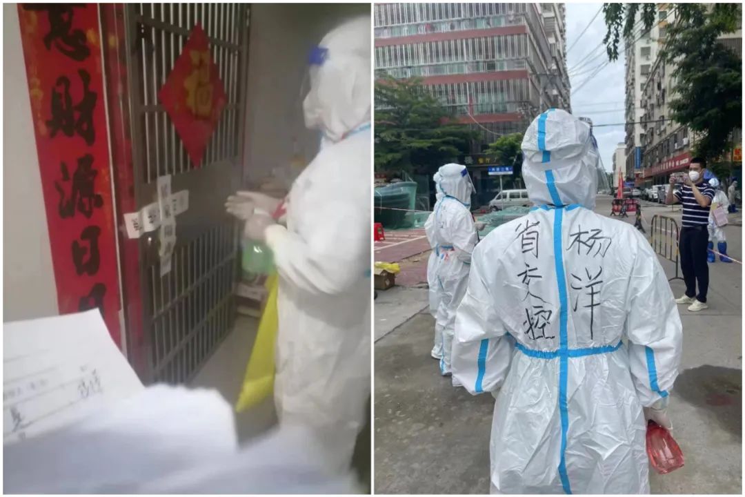 8月16日,根据疫情防控工作需要,杨洋被调配到兴滨三巷进行住户信息的摸排登记工作。兴滨三巷属于高风险封控区,楼层高度一般10层左右,大多数楼栋是人员密集的群租楼,且没有安装电梯。为了精确掌握住户人数和疫情信息,他们穿着“白衣铠甲”,一层层爬楼梯入户采集。他们与高温搏斗,与台阶抗衡,在将近40度高温的三亚,全副武装的他们常常感觉到喘不过气来。终于爬到采集目标的门口,经过一系列的沟通、安抚、登记等工作,护目镜早已被雾气朦胧了双眼,汗水早浸透了背心。为了尽快控制住疫情,他们不曾有怨言,从晨光曦微到夜幕降临,平均每组每天走访入户约60户,人员登记约200人。
