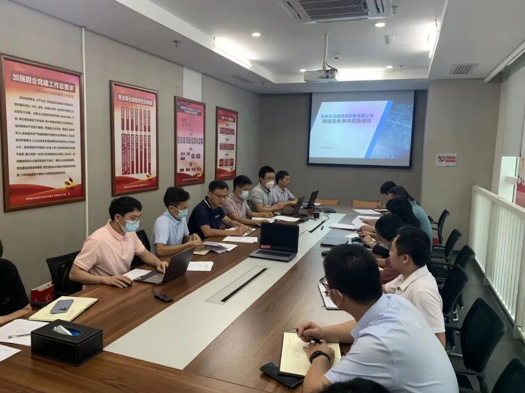 为进一步完善公司网络安全应急处置机制,强化全司系统网络安全意识,提升网络安全应急处置能力,9月7日,海南交控开展2022年网络安全事件应急演练。应急领导组组长,党委委员、副总经理梁翠,以及应急领导组、网络安全供应商专家顾问组和各部门、单位相关人员近20人参加演练。