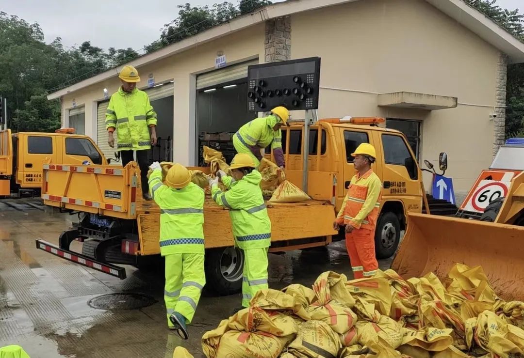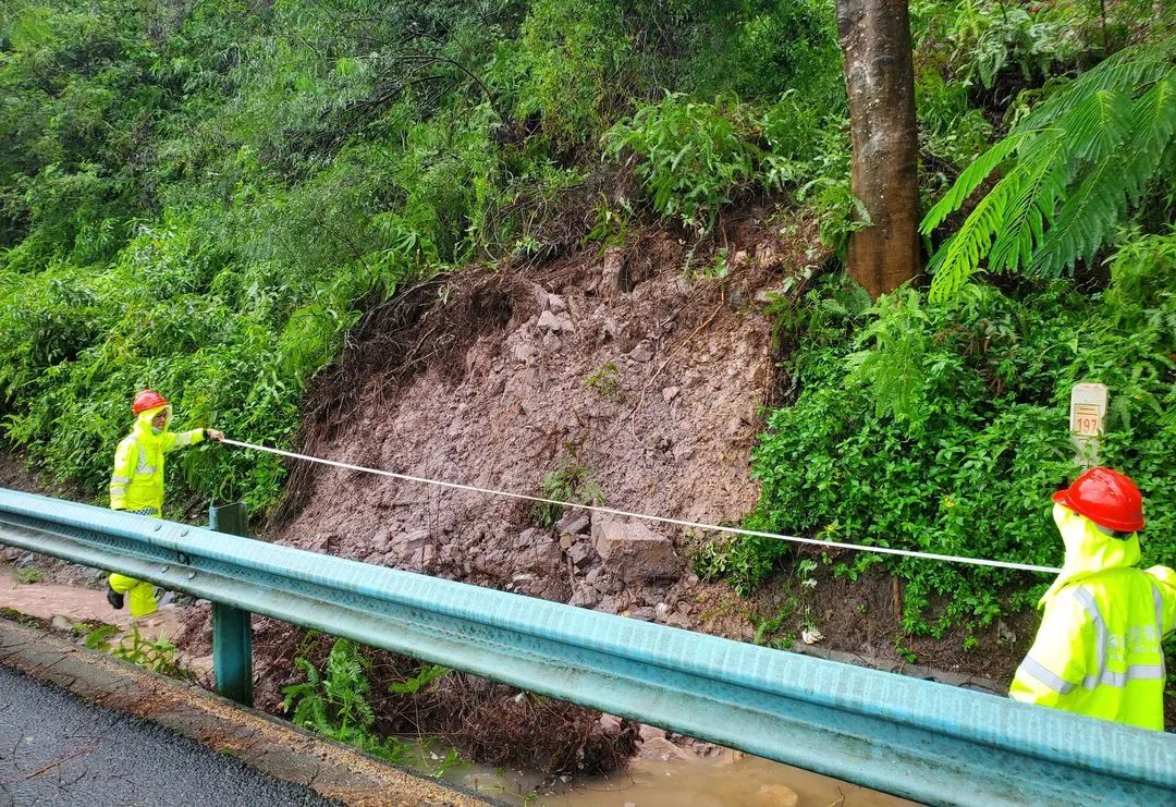 在防台防汛主战场,养护公司坚持预防预备、加强巡查和应急处置相结合,全面紧起来、动起来、快起来,确保防台防汛工作万无一失。一是全方位做好准备工作。人员到岗到位实行24小时值班制度,提前对车辆、机械设备、应急照明等设施进行检查维护,紧急租赁挖机等装备,储备足量沙袋、冷料等应急物资。二是紧盯重要隐患点,加强巡查检查。组织人员对积水点、易水毁点、历史塌方点、重点高边坡、重点桥涵等关键隐患点开展观测跟踪,加强广告牌、易倒伏树木、路灯等风险点巡查,做到及时发现快速清障。三是应急处置及时有效。10月20日上午,定安管理站巡查人员于G98环岛高速右幅K44+860处发现一处小型滑坡,经现场勘察发现,滑坡面积约为50平方,滑坡塌方未对道路通行产生影响,巡查坡顶及滑坡点周边边坡也未发现异常。定安管理站当即紧急组织人员备好沙袋、彩条布等物资前往该滑坡点开展应急处置,避免滑坡扩大,确保道路安全通畅。