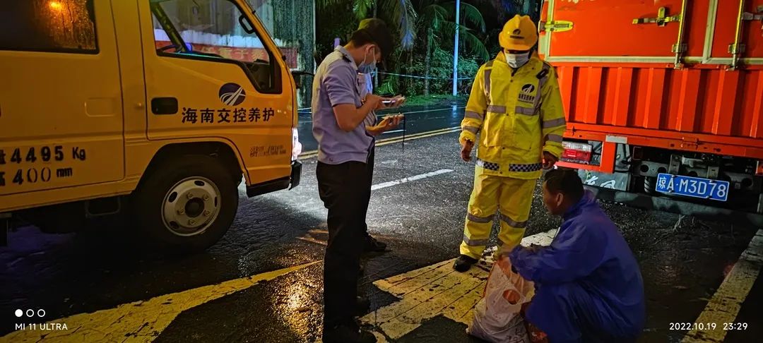 栉风沐雨、砥砺前行,680公路管养路线上,“车轮上党小组”是最动人的那抹红。10月19日,琼海站“车轮上党小组”成员崔传福、苏庆福在台风天夜间巡查路况途中,发现冒着大雨颤颤巍巍行走在应急车道的老人,情况极其危险。两位职工立即停车询问,发现老人因风雨过大迷失方向误上高速,找不到回家的路,也联系不到家人。崔传福和苏庆福立即与110取得联系,驾驶养护车辆载着老人驶下龙滚互通,托付给龙滚派出所民警,帮助老人找到回家的路。
