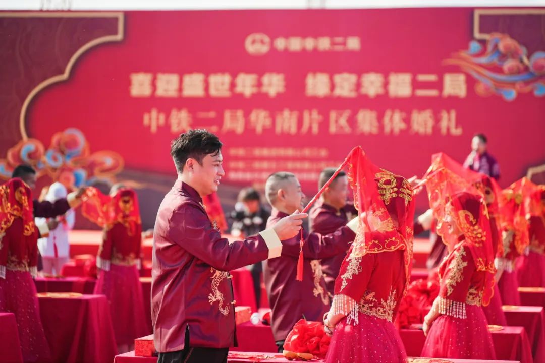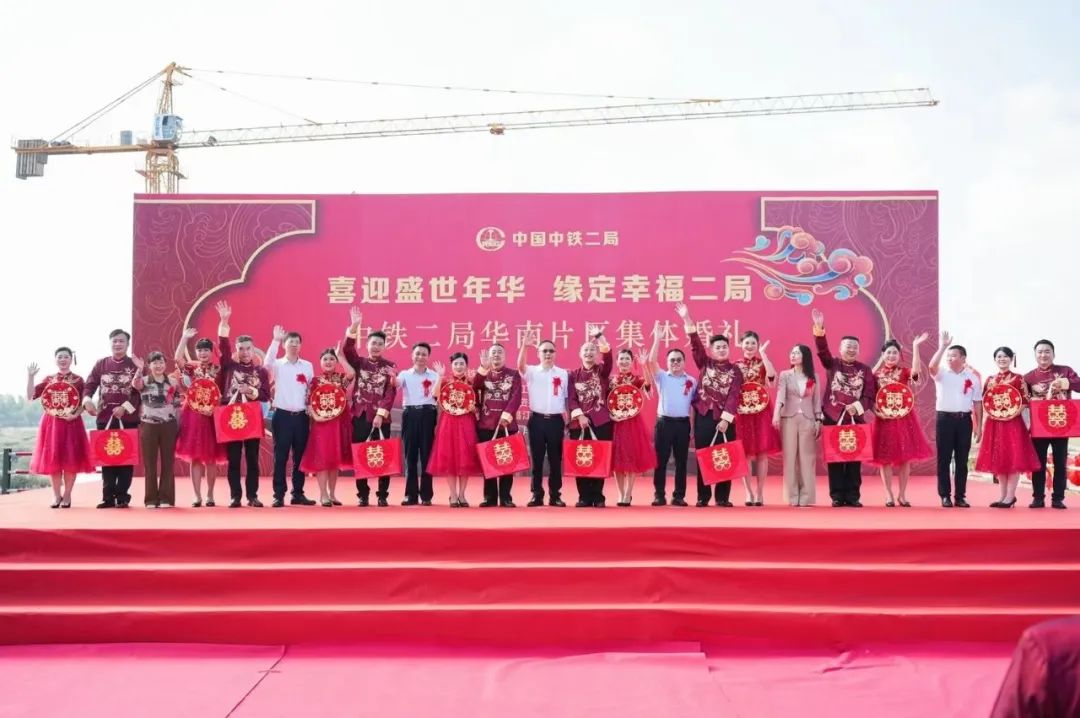 11月11日(农历十月十八日),美好的集体婚礼在项目四工区昌化江大桥施工现场盛大举行。15对来自海南环岛旅游公路项目的新人身穿中式传统婚服,在热闹喜庆的音乐声和在场领导同事们的祝福声中携手走上红地毯,步入婚姻殿堂。