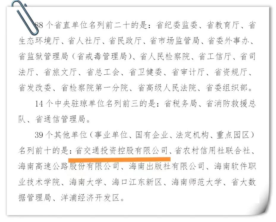 11月25日,海南省“能力提升建设年”暨深化拓展“查堵点、破难题、促发展”活动领导小组办公室,公布全省“查破促”活动第六轮动态评估结果,海南交投在全省39家事业单位、国有企业、法定机构和重点园区排名中荣获第一!