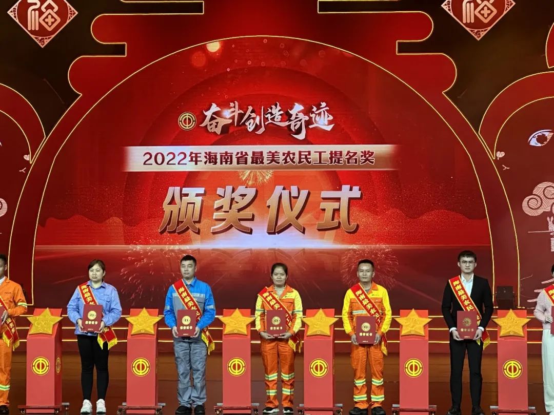 1月9日晚,由海南省总工会主办、海南广播电视总台(集团)承办、海南新闻频道执行的“奋斗创造奇迹” 2023年海南省农民工春节联欢暨2022年最美农民工表彰晚会在海南省歌舞剧院举行,海南交投养护公司刘亚敏、李布江荣获2022年“海南最美农民工”提名奖。