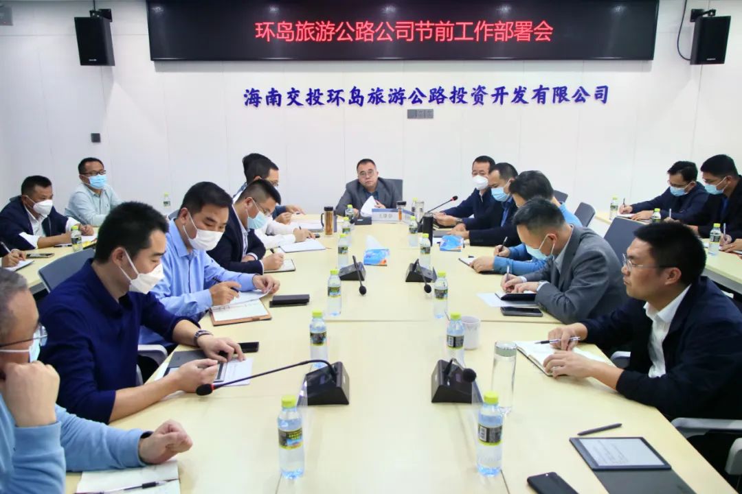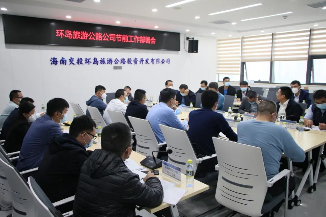 1月12日下午,海南交投环岛旅游公路公司召开节前工作部署会议,安排部署春节期间项目建设工作。会议由环岛旅游公路总经理吴卓科主持,董事长王康奋出席会议并讲话。环岛旅游公路公司领导班子、相关部门负责人、总承包部及各片区负责人现场参会,驻地办、中心试验室、及工区负责人以视频形式参会。