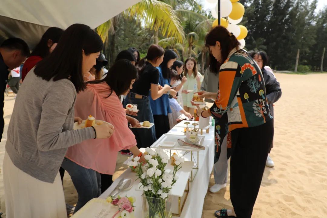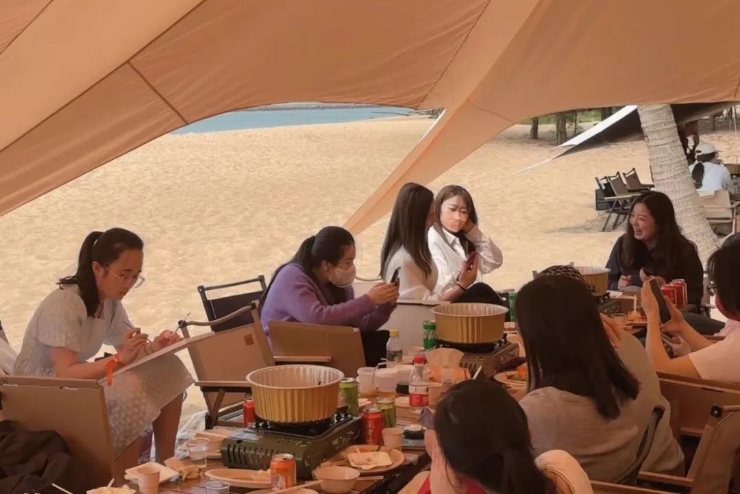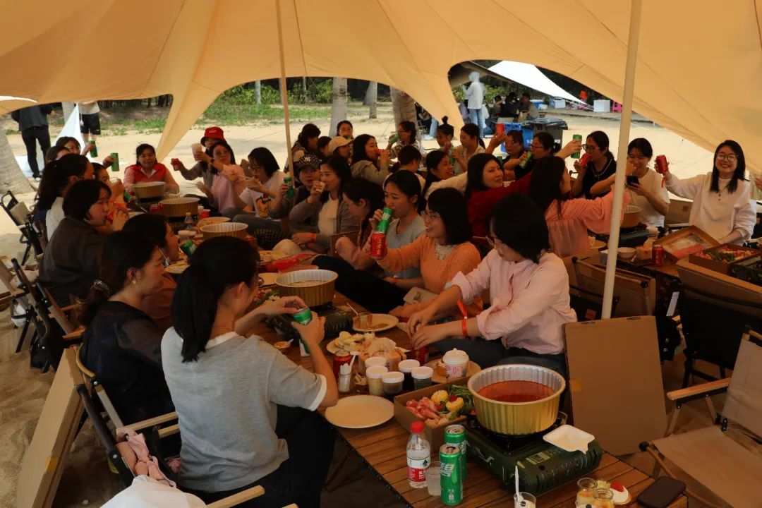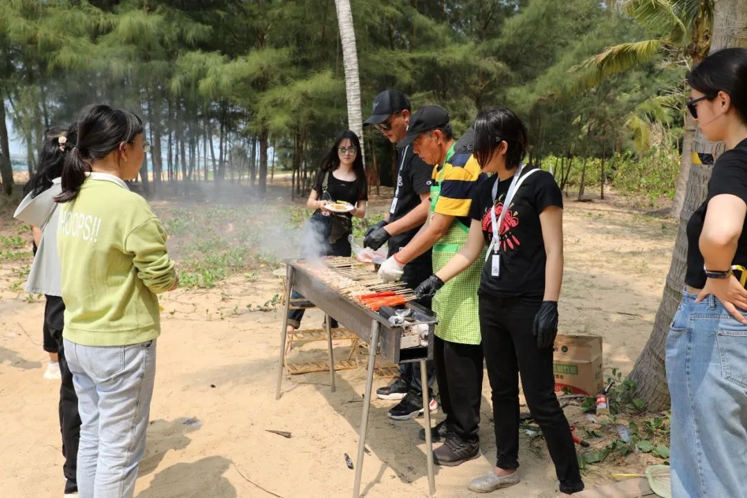 随后,大家来到金沙湾海滩进行户外露营和水彩DIY活动,在碧海蓝天的背景里,大家舞刷弄炭,绘画写生,相互比拼拍照技艺,共享美味,整场活动热闹非凡,气氛如同炭火一般迅速升温,一起在欢声笑语中享受着节日的快乐。