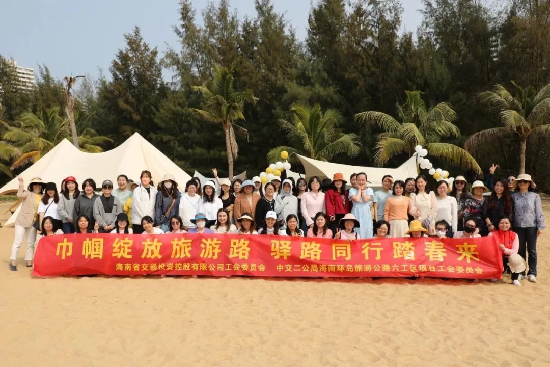 踏青正当时,莫负好时光。为感谢全体女职工们的辛勤付出,进一步提升团队凝聚力,激励女职工弘扬“立足岗位,巾帼不让须眉”的精神,团结一心推进企业高质量发展,3月8日,海南交投工会联合海南省交通运输工会、环岛旅游公路六工区全体女职工,结合“海南环岛旅游公路2023年底实现全面建成通车”“雷锋活动月”主题,共同举办了一场“巾帼绽放旅游路,驿路同行踏春来”主题踏青活动。