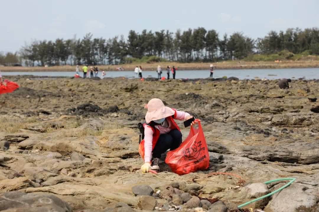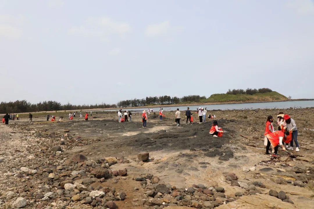 此次活动在美丽的澄迈县雷公岛旅游公路沿线拉开序幕。雷公岛海岸由各种高低起伏、大小不一、嶙峋怪异的火山岩聚集而成,是一座天然的熔岩“博物馆”,但是由于岸上堆积大量海洋垃圾,给周边环境带来严重的色觉污染和环境破坏。于是大家将这里作为行程的第一站,开展“少一片垃圾 多一片海蓝”主题党日活动,大家热情昂扬,不怕脏累,穿上志愿者马甲,拎着垃圾袋和铁夹子等工具,将海岸带周边的塑料制品、渔船使用的泡沫、矿泉水瓶、酒瓶等垃圾一一进行收集清理,用实际行动守护雷公岛的美丽海岸线。