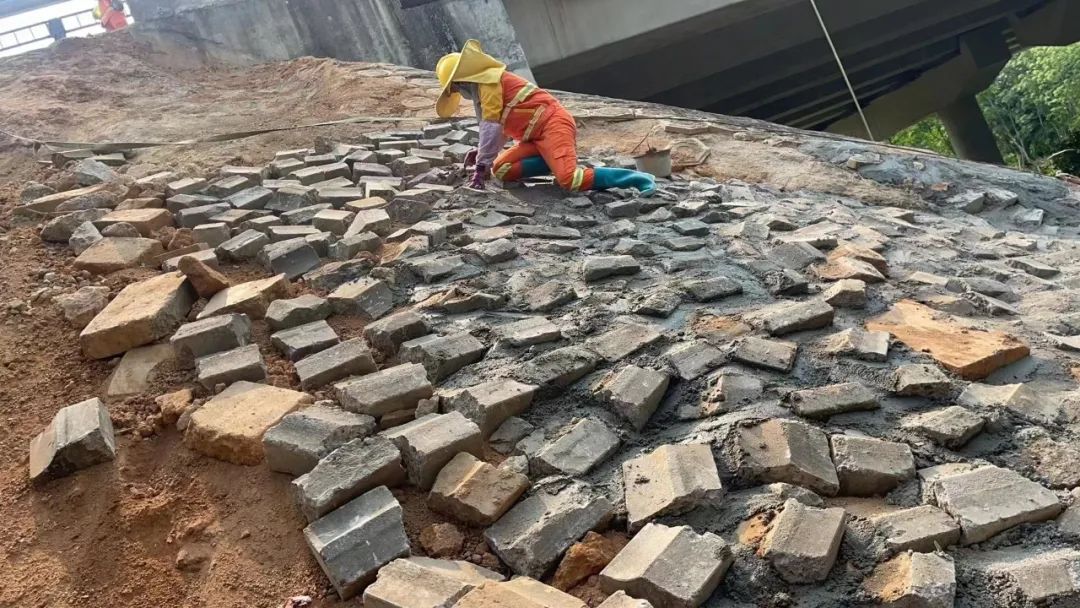 4月16日,琼中管理站在巡查过程中,发现右幅K119+540路堤边坡塌方、截水沟损坏,左幅K116+800路堑边坡多处冲刷,且该边坡此前已出现落石、局部塌方的情况,进入汛期,极容易再次出现塌方,严重影响广大司乘出行安全。对此,琼中管理站靠前工作,安排了6名工作人员,对该两处边坡进行清理,并对塌方位置进行修补。截至目前,琼中管理站已基本完成修复工作(右幅K119+540已修复完毕、左幅K116+800已完成70%),并清理管辖路段高边坡截水沟40座,确保雨水及时排放。