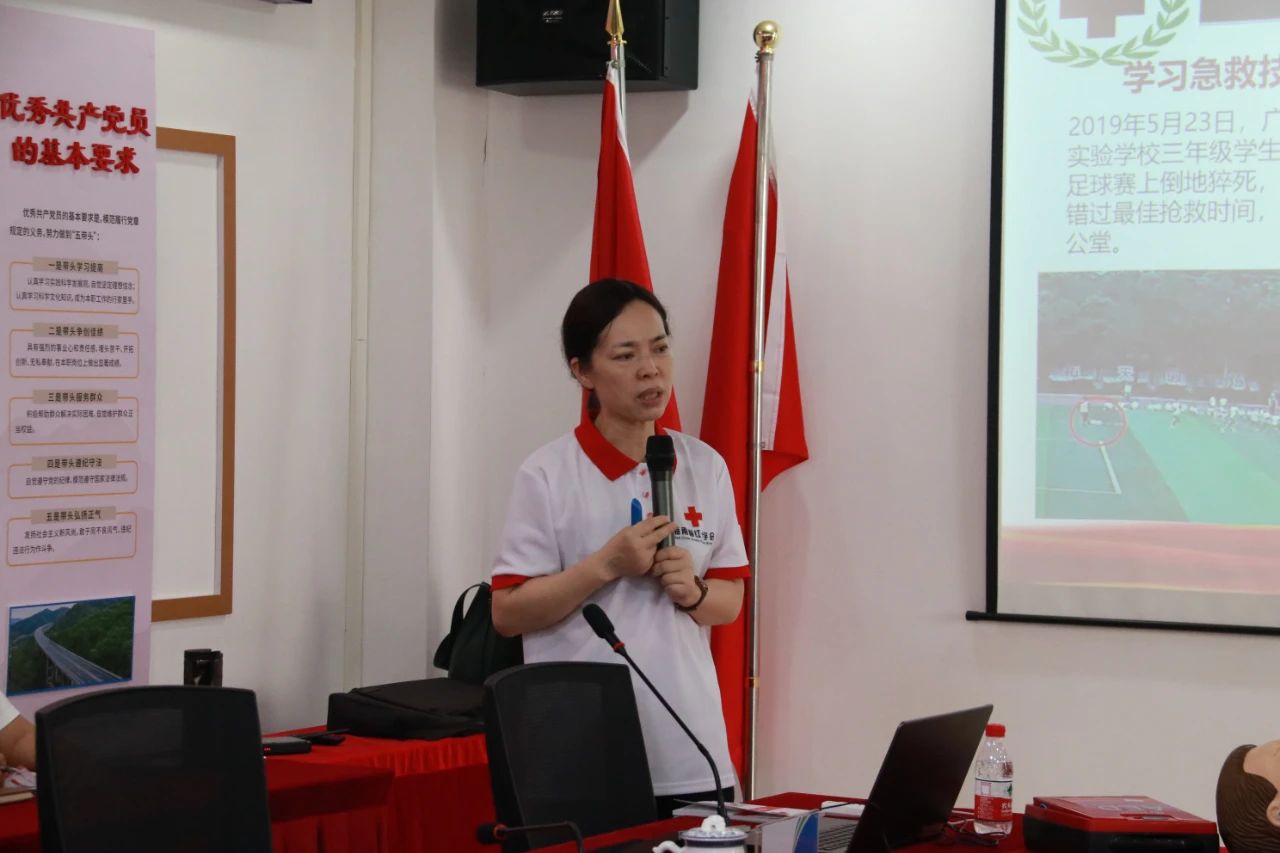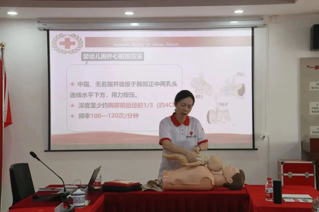 曾美青老师向参训学员讲授心肺复苏术的基本原理,强调把握急救“黄金4分钟”的重要性,以生动的实例阐述创伤救护四项技术、气道异物急性梗阻救急法、胸外按压及特殊伤处置等内容。现场培训内容丰富,学习氛围浓厚,培训师精彩的演讲与专业的指导引起参训学员的热烈反响。