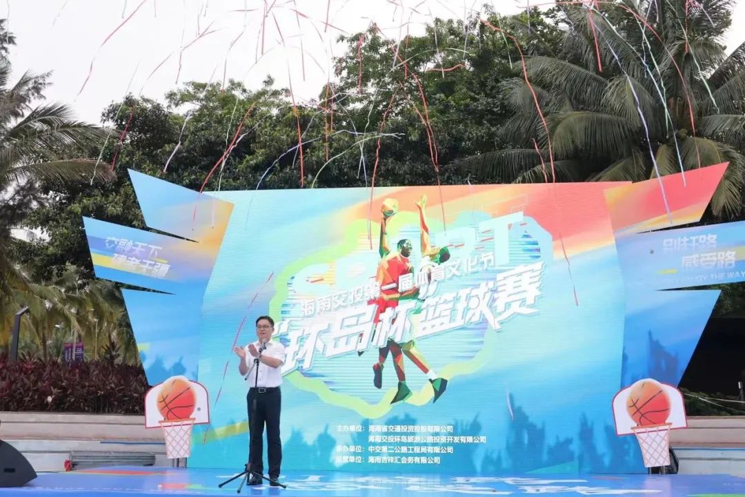 阳光沙滩,海风习习。为进一步丰富海南交投干部职工体育文化生活,充分展现积极进取、勇于拼搏的精神风貌,海南交投第一届体育文化节继趣味运动会、足球赛后,“环岛杯”篮球赛于5月19日17:30在风光怡人的海口西秀海滩公园正式开幕!海南交投党委副书记、总经理陈泰锋出席开幕式并致辞。