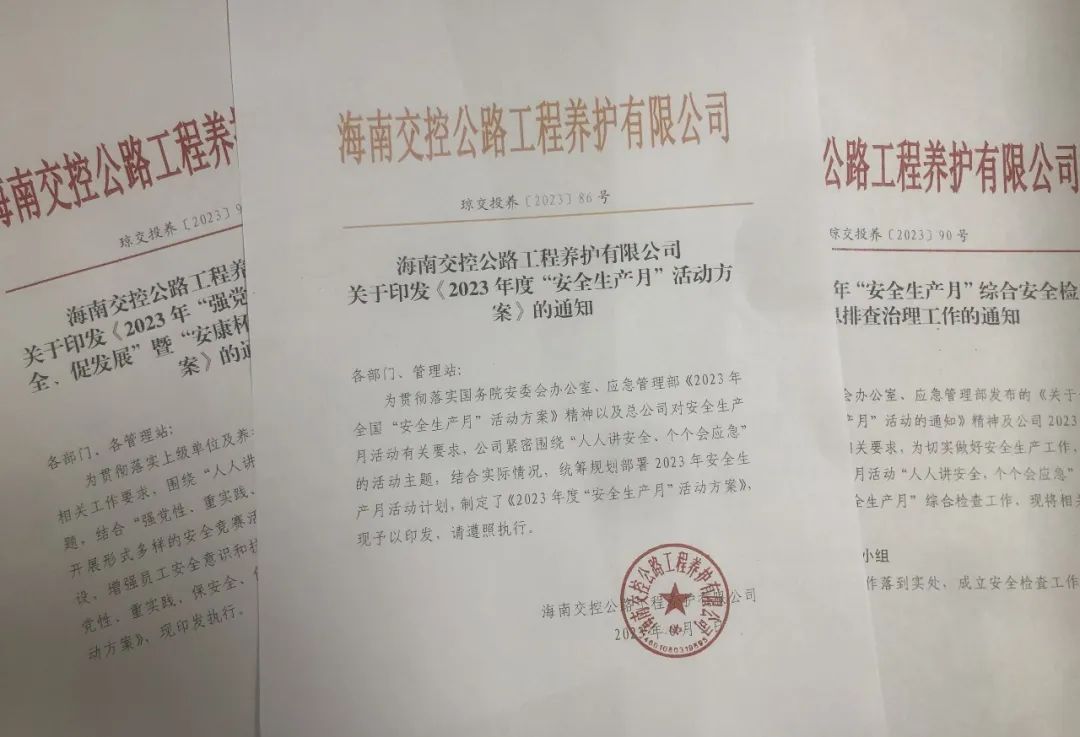 为深入推进“安全生产月”活动,紧扣“人人讲安全 个个会应急”主题,海南交投养护公司开设“安全在路上”宣传专栏,全方位宣传公路养护安全生产工作典型,不断营造学安全、讲安全、促安全活动氛围,助力活动成效提升。