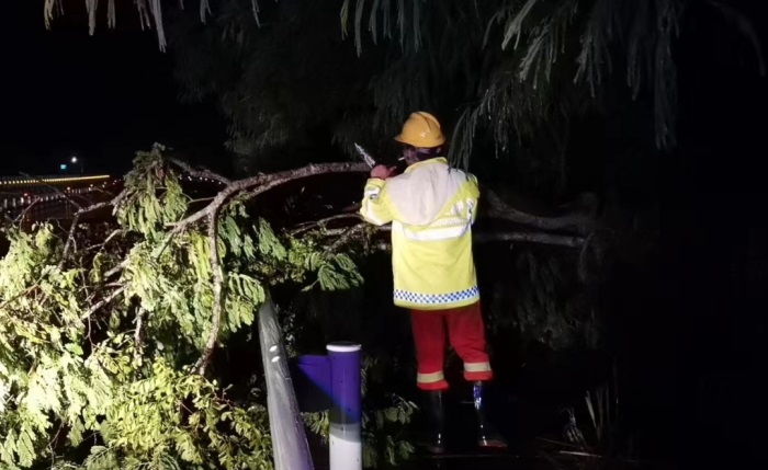 2020年10月19日受18号台风“莫拉菲”的影响,牙挽隧道左幅出口处,因连续下雨导致边坡山体滑坡从而阻断高速公路,情况非常危急。接到险情后,王亚光主动请缨,迅速集结站内同事,第一时间赶赴现场运用挖机进行应急抢险。任凭雨水的拍打,全身已湿透,也全然顾不得歇息,王亚光及其同事持续奋战在第一现场,积极清理泥土,直到翌日清晨……