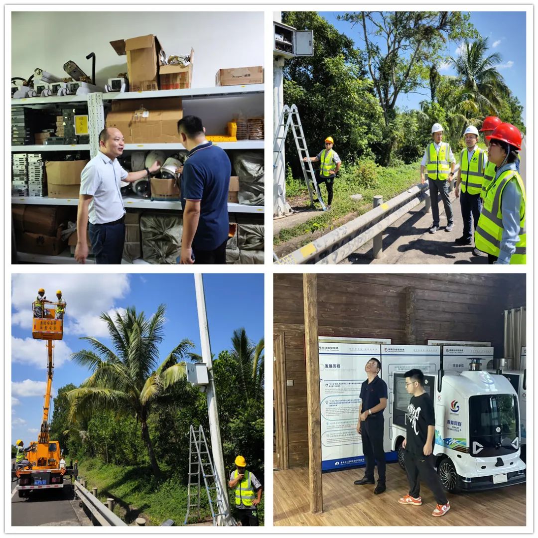 安全检查小组先后对海口琼北车管所高速运维内场、儋州外场运维驻点、西线高速运维施工现场、环岛旅游公路临高段机电设备点位及博鳌东屿岛等项目现场进行了细致的排查,听取了现场项目负责人关于项目安全生产情况的汇报。