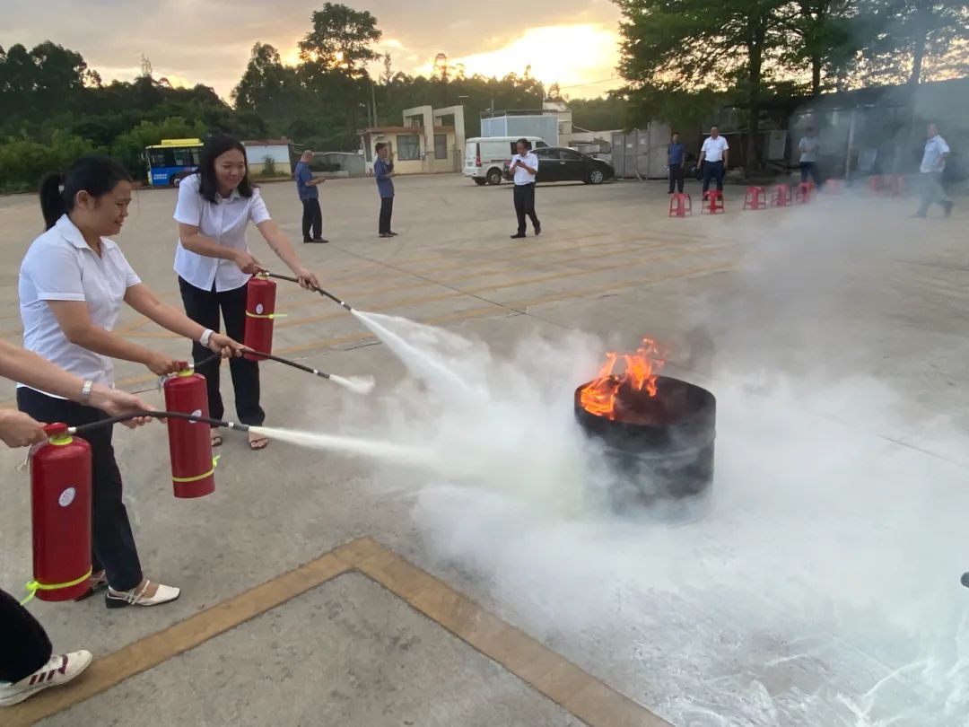 演练开始前,临高公交安全生产领导小组成员陈志钢详细宣读了应急演练方案,明确参演人员的职责分工,要求所有人员做好自身防护的同时保证演练的质量,注重以“练”备战,着力提升员工对突发性事件的应急处置能力。随后,安技部成员向全体员工进行消防安全知识的讲解,详细分析了火灾的发生原因、预防措施以及办公楼火灾发生时的应对方法,并逐步演示并说明灭火器的正确使用方法,引领员工们亲身体验灭火器的使用过程。