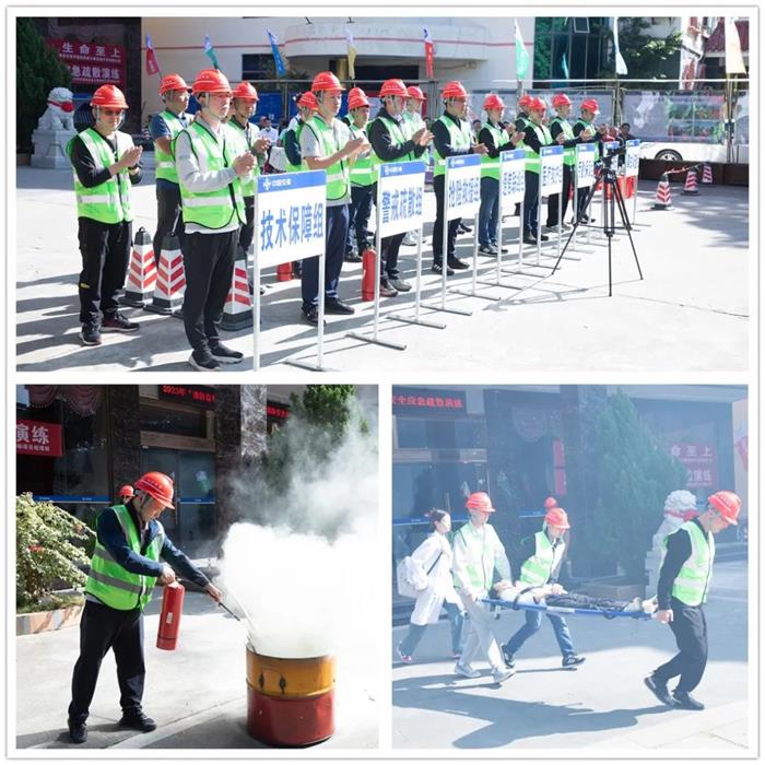 本次应急演练模拟某项目部三楼办公室发生火情,项目部人员严格按照灾害事故应急处置方案开展现场指挥工作,全面涵盖了会商研判、响应启动、应急逃生、善后处理等各个主要环节。演练现场指挥部充分发挥了统筹协调作用,指挥体系高效运转,各应急小组各司其职,服从指挥、反应迅速、处置得当,展现了救援人员的专业素养,体现了救援人员团结协作、合力抗灾的团队精神。