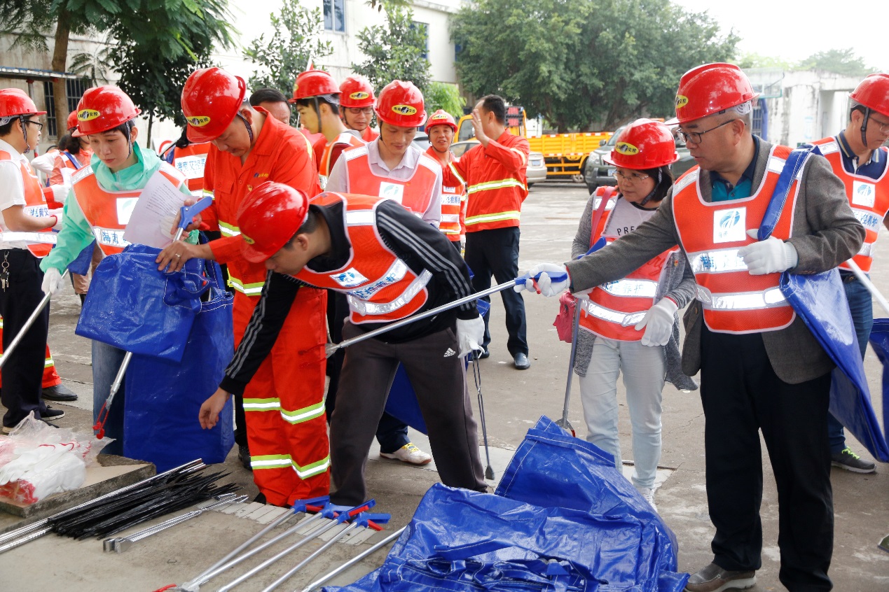 党员干部职工准备垃圾袋、钳子、手套等工具