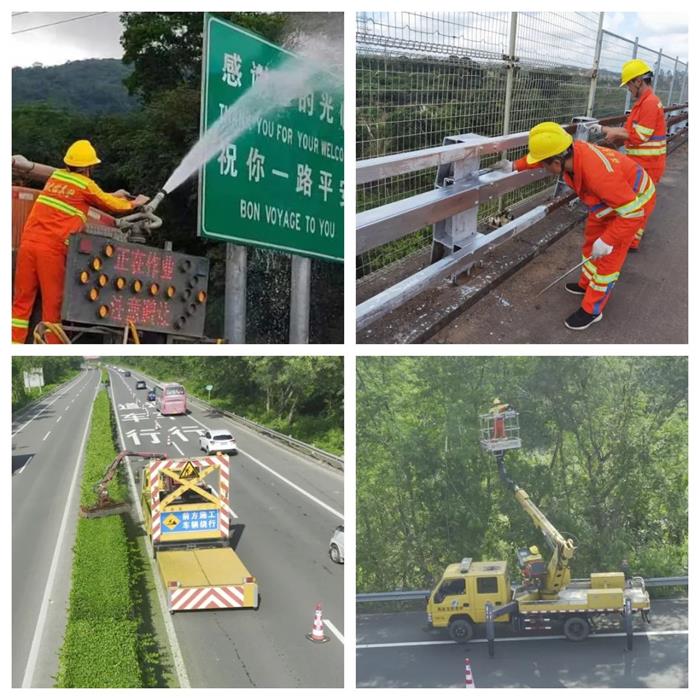 开展路域卫生“大扫除”,让高速公路焕然一新,共完成路肩路缘草修整1308.6公里,组织对沿路杂树枯枝、桥下堆积物进行全面清理,对标识标牌、防眩板等交安设施进行清洗,确保春运期间路容路貌整洁,最大程度提升驾驶感受。