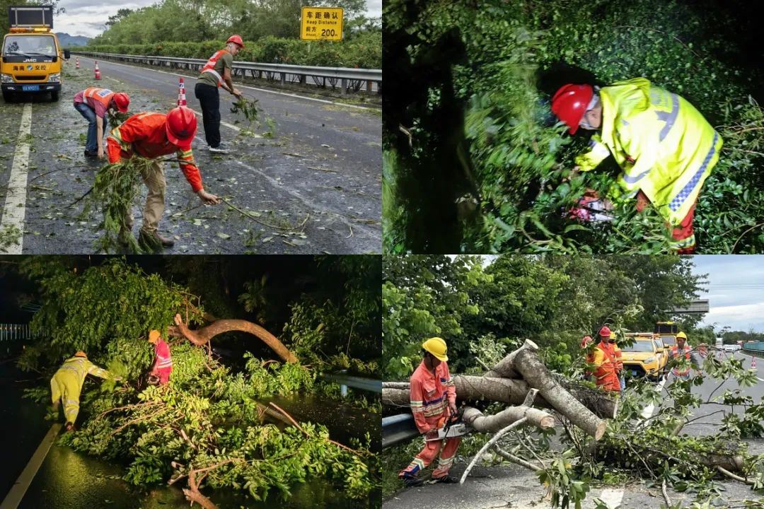 后半夜,随着台风的临近,雨势也变得猛烈,路上多处树木倒伏,道路阻断严重影响了群众出行安全。为尽快恢复道路通行,养护人员顶着狂风暴雨,通宵达旦清理倒伏的树木、疏通积水路段、抢修受损设施、转移受困群众,用实际行动诠释“逆”风担当。此次防台工作中,养护公司共出动人员985人次、巡查车辆401车次,清障1786处次,其中清理倒伏树木625处。