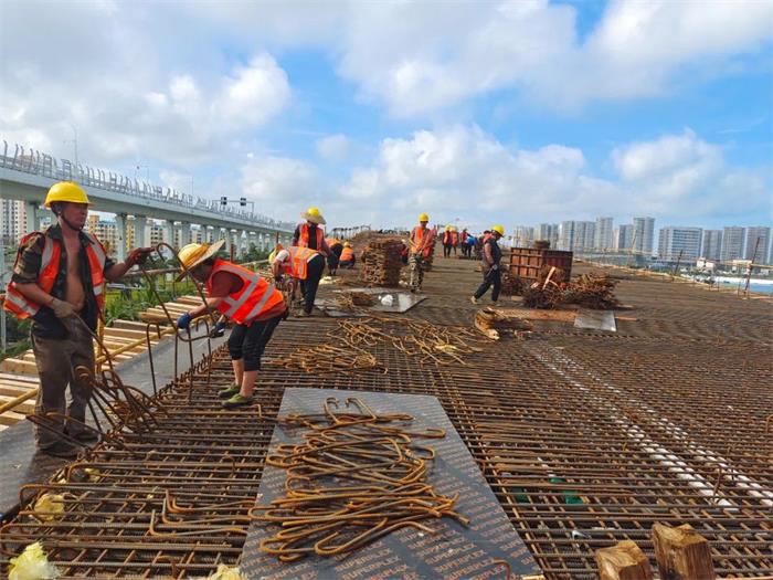 作为支撑自贸港封关运作的重点项目之一,海口新海港片区“二线口岸”专用通道项目紧急组织对施工全线进行复工复产安全生产条件核查,并于9月9日正式复工。目前复工人数280人,正在加快开展场地清理、机器检修、支架及模板恢复、护栏钢筋绑扎等工作,各工点随供电情况正逐步恢复。