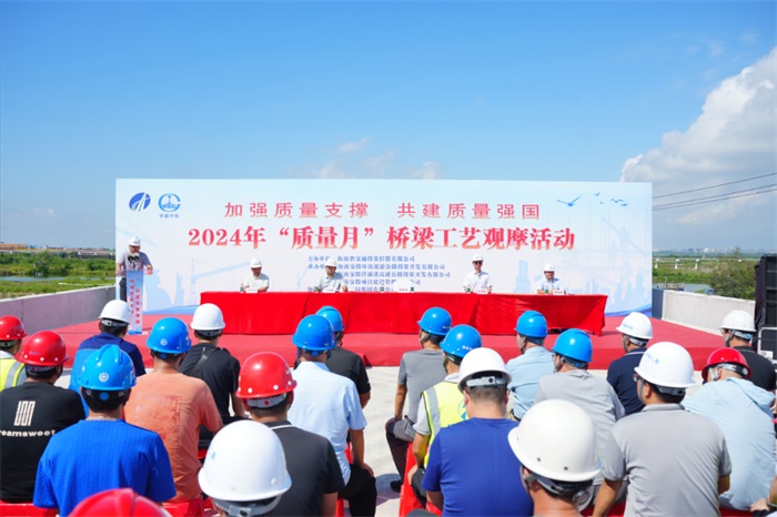 9月25日,海南交投2024年“质量月”桥梁工艺观摩活动在海南环岛旅游公路项目第十工区项目部环新英湾支线施工现场举行。该活动以“加强质量支撑 共建质量强国”为主题,海南交投在建项目建设单位、监理单位和施工单位等相关负责人共80余人参加。