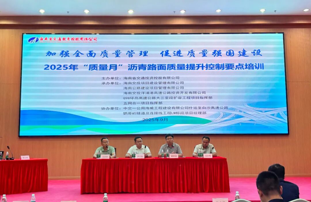 为进一步加强在建项目沥青路面质量管理,提高沥青路面控制管理水平,9月12日下午,海南交投在海口举办2025年“质量月”沥青路面质量提升控制要点培训。海南交投工程管理部、环岛旅游公路公司、大三亚扩容项目指挥部、“五网合一”项目指挥部、交投项目管理公司、路桥项目管理公司、洋浦港公司代表以及在建项目技术管理人员共计200余人参加培训。