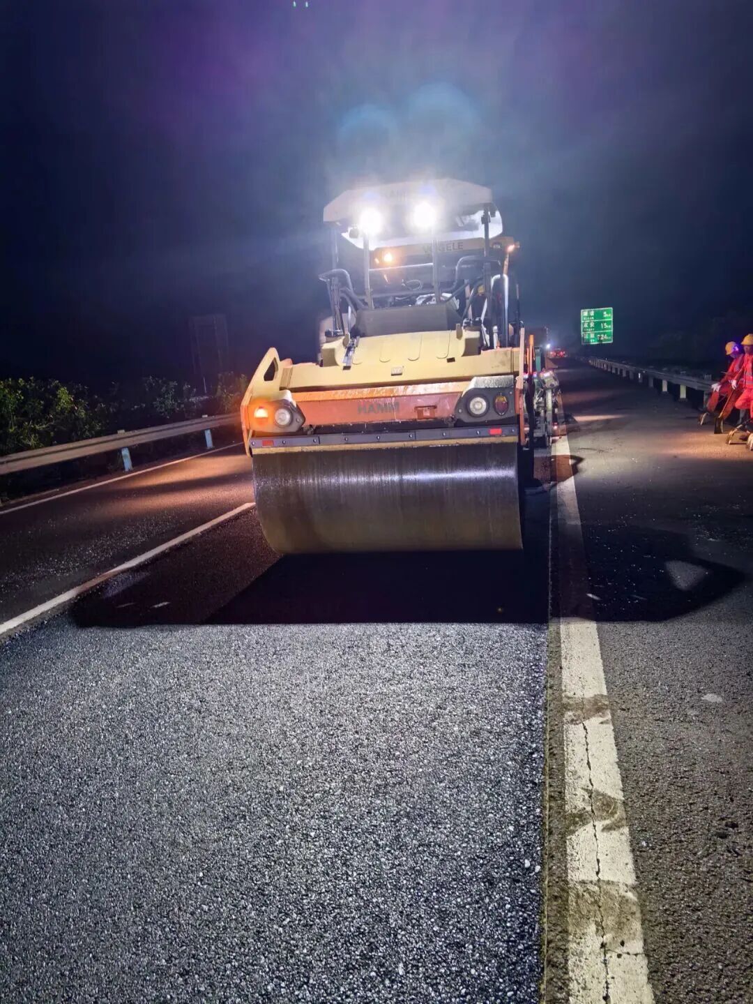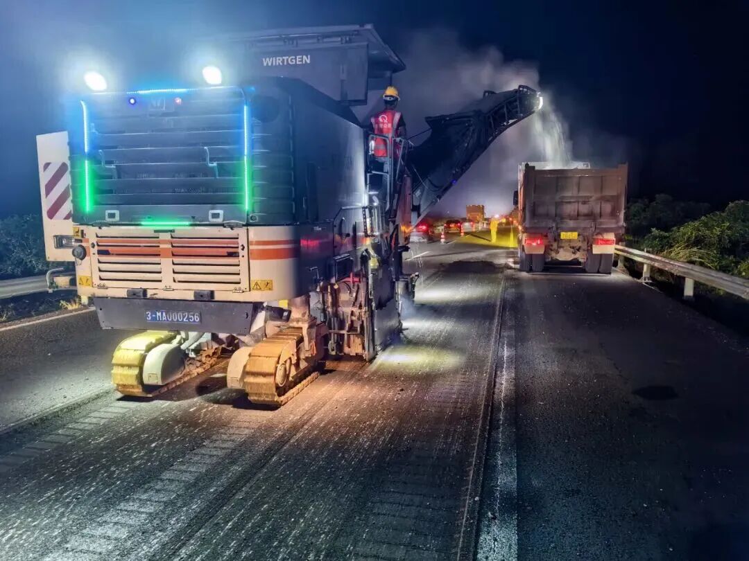此次任务时间紧、任务重,自9月15日起,由70名施工人员与56台机械设备组成的专业队伍迅速集结进场,同步推进G9811海三高速K16至K41段与G98环岛高速K9至K41段的抢修工作。为抢抓工期,最大程度减少施工对市民日常出行的干扰,海南路桥集团果断采取“昼夜交替,轮番做工”的作业方式,提高作业效率。经过昼夜奋战,9月16日至19日,G9811海三高速K16至K41段已完成原3.9千米沥青混凝土路面的精细化铣刨,同步铺筑13732平方米SBS改性沥青混合料,路面技术状况指数PQI大幅提升至92.24;G98环岛高速K9至K41段的应急处置工作克服10.06千米更长施工里程的考验,顺利完成旧路面铣刨34472平方米与SBS改性沥青及厚沥青混合料铺筑,路面技术状况指数PQI提升至92.19,该路段抢修工作将于9月23日结束。两段路面均高质量满足预设处置标准。