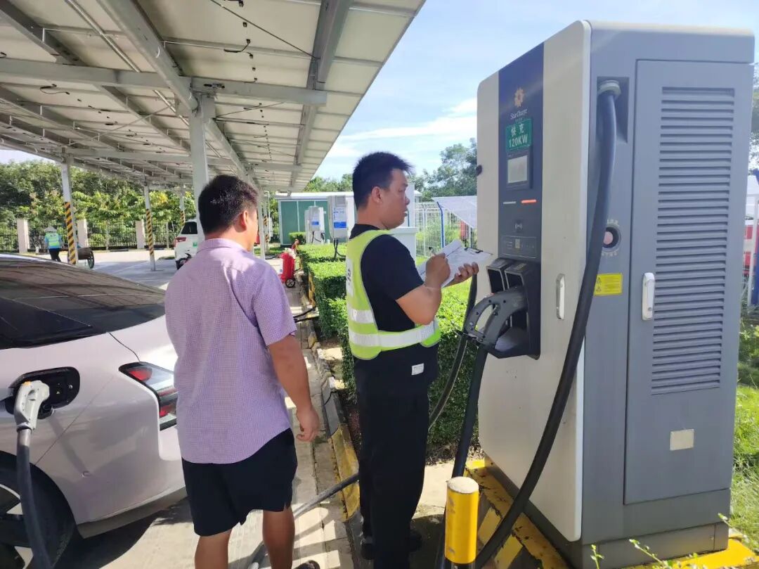 充电服务“高效能”,能源供应“不缺位”。为筑牢能源补给线,交商集团加大油品采购及储备工作,累计储备各类油品1200余吨,为群众出行和抢险应急车辆提供充足的能源保证。面对日益增长的新能源汽车充电需求,提前通过“海南充电”APP、现场标识等渠道,发布充电桩实时状态信息,引导用户错峰充电,安排专人现场疏导,维护充电秩序,同时提供详细的周边充电设施路线指引图,提高整体充电效率。截至10月6日,服务区充电桩充电量约22.6万度,服务新能源车主约1.1万人次,有效保障了假期新能源汽车出行的充电需求。