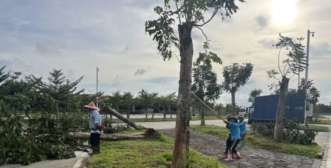 台风防御“抢在前”,复工复产“快准稳”。随着台风“麦德姆”逼近,交商集团提前进入“备战”状态。为确保服务区的安全保障,员工们提前在服务区内开展全面检查和加固工作,包括加固门窗、清理排水管道、修剪高大树木、加固光伏板,同时检查应急发电机、照明设备等,确保应急状态下能“立即启用”。台风过境期间东太、屯昌服务区出现停电情况,交商集团第一时间联系当地供电局、抢修队对服务区停电原因进行排查及维修,保障服务区供电稳定。台风登陆后,第一时间组织人员对受影响较大的美兰服务区开展现场核查,并立即加固倒伏树木、修复受损设施等,有序推动服务区恢复正常运转,切实保障过往旅客出行需求。