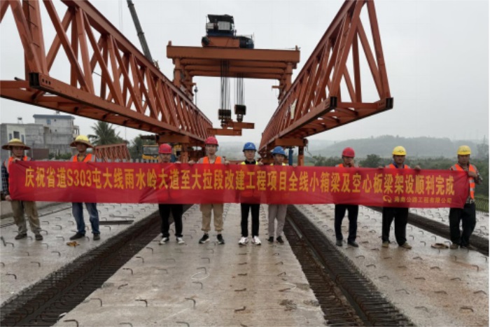 10月27日下午,海南交通集团旗下省道S303屯大线雨水岭大道至大拉段改建工程中南渡江大桥完成最后一片箱梁架设。至此,该改建工程全线440片预制小箱梁及54片预制空心板架设任务圆满完成。作为工程攻坚的“咽喉”环节,桥梁架设的完工直接决定全线贯通进度与后续施工效率,为项目按期交工筑牢核心支撑。