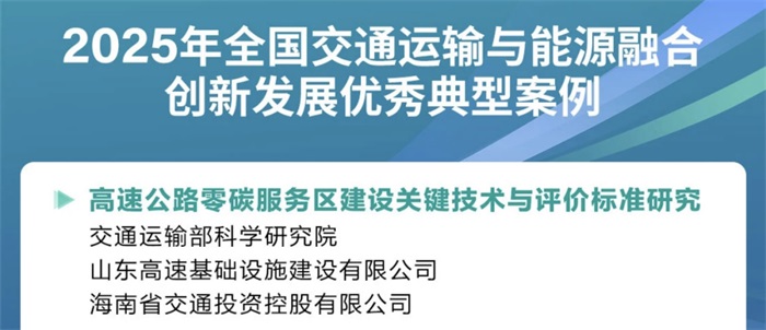 其中,“高速公路零碳服务区建设关键技术与评价标准研究”入选10大优秀典型案例。通过该研究,科学界定零碳服务区碳排放核算边界,形成符合海南特点具有可操作性的零碳服务区关键技术方案,指导海南零碳服务区建设,并在海南率先成功打造冯家湾零碳服务区示范工程,树立了零碳服务区建设样板。