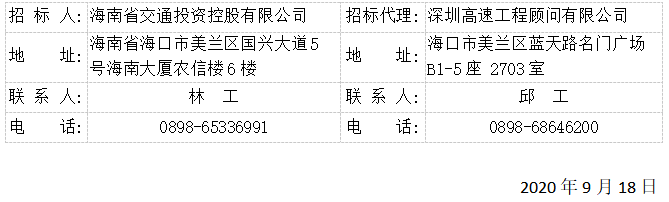 星空app在线登录入口委托深圳高速工程顾问有限公司的海南省环岛旅游公路工程防洪评价技术服务招标于2020年9月15日在中国招标投标公共服务平台、全国公共资源交易平台(海南省)、星空app在线登录入口发布招标公告,本项目招标文件作如下补充说明,本补遗书与招标文件有不一致之处,以本补遗书为准。