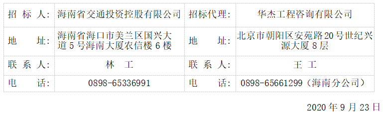 星空app在线登录入口委托华杰工程咨询有限公司的海南省环岛旅游公路工程用地规划调整及永久基本农田补划方案技术服务招标于2020年9月16日在中国招标投标公共服务平台、全国公共资源交易平台(海南省)、海南省交通运输网、星空app在线登录入口发布招标公告,本项目招标文件作如下补充说明,本补遗书与招标文件有不一致之处,以本补遗书为准。补遗内容如下: