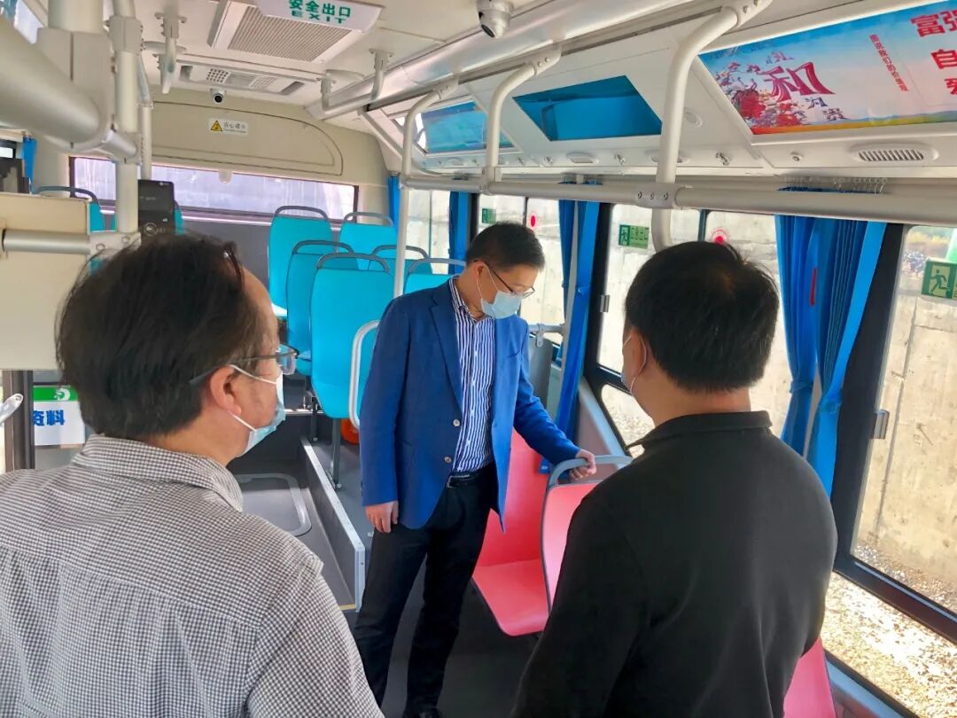 临高公交董事长林先湖简要汇报企业目前规模和公交车辆日常运营状况,重点介绍了公交车司机行为识别系统,该系统通过实时监控驾驶员的精神状态,能够有效减少安全事故的发生。临高公交总经理贺正华指出,疫情防控期间临高公交严格执行公交一趟一消杀、司机上岗前登记体温信息、乘客必须全程佩戴口罩等要求,全面保障公交安全运行。