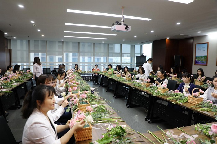 3月8日上午,为庆祝第111个“三八”国际妇女节,丰富广大女干部职工精神文化生活,海南交控工会组织了一场温馨有趣的插花沙龙和普法宣传活动,全体女干部职工欢聚一堂,共度美好春日时光。