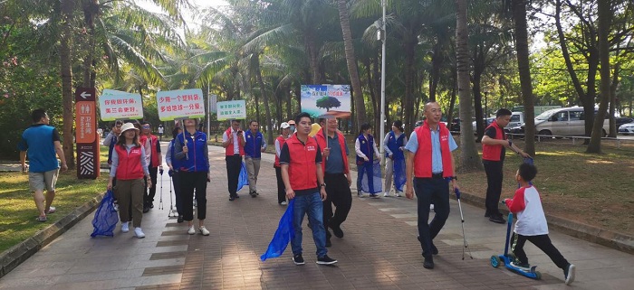 最后,大家手持环保编织袋与垃圾捡拾工具在白沙门公园沿线海滩开展海边环卫活动,向市民群众宣传“垃圾不落地,美好新海南”的绿色环保理念,为环境保护贡献自己微薄之力,为公益增添一份爱心,为社会播种一份文明。
