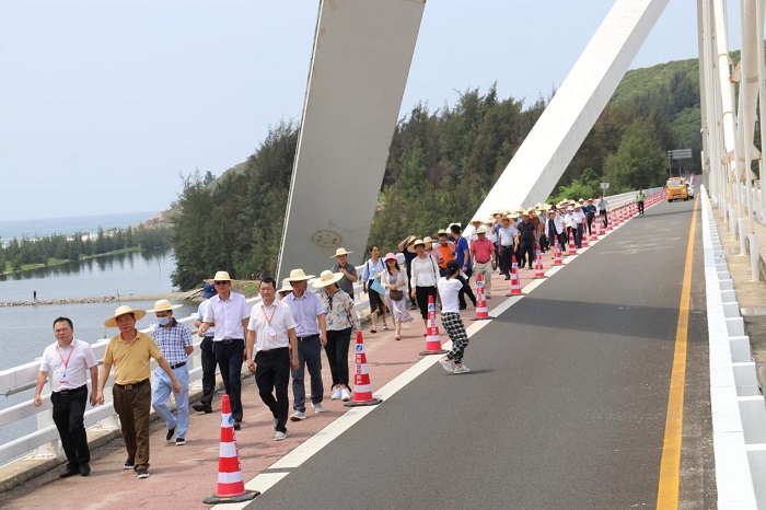 在海南交控养护公司总经理王康奋陪同下,江海等参会领导及人员对省道S231和石线沿线养护情况进行调研,并重点观摩了K3+950-K4+100观景台、K22+100驿站、K27+220太阳河大桥等管养情况,参观了海南交控养护公司万宁旅游公路管理站。