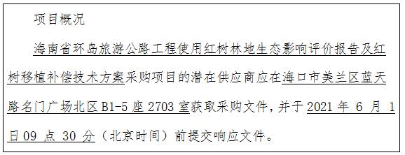 项目名称:海南省环岛旅游公路工程使用红树林地生态影响评价报告及红树移植补偿技术方案